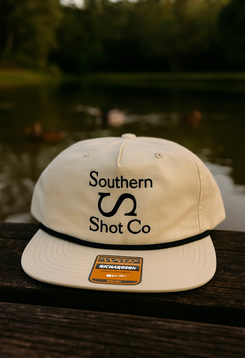 Cream Flat Bill Hat With Black Rope